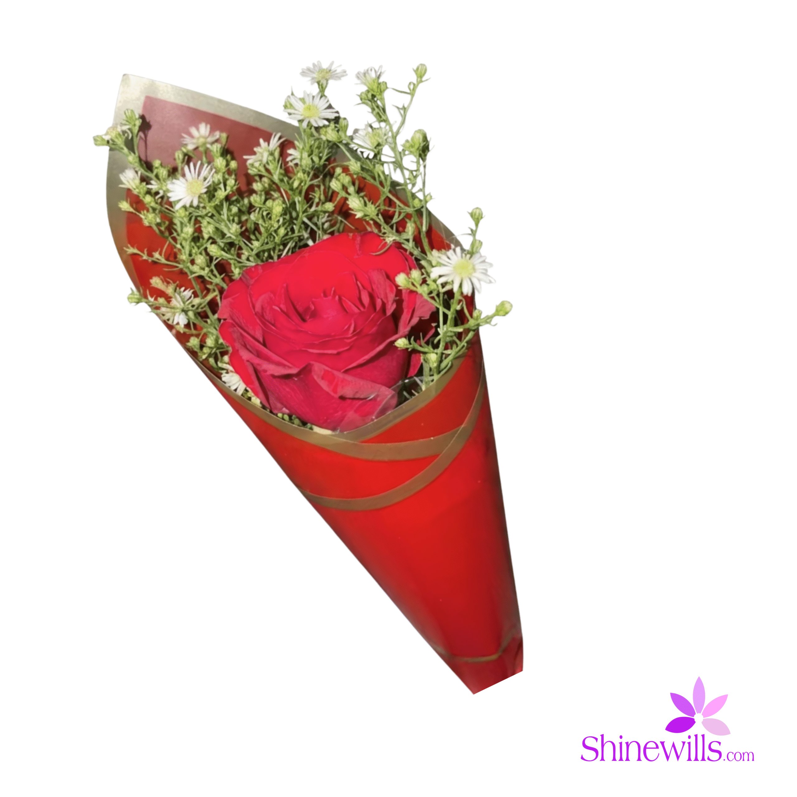 Bold, romantic, and timeless, the Pure Red Rose Wrap features a single premium red rose accented with delicate white fillers and fresh greenery. Wrapped in rich red premium paper, this bouquet makes a powerful statement of love, admiration, and deep emotion.